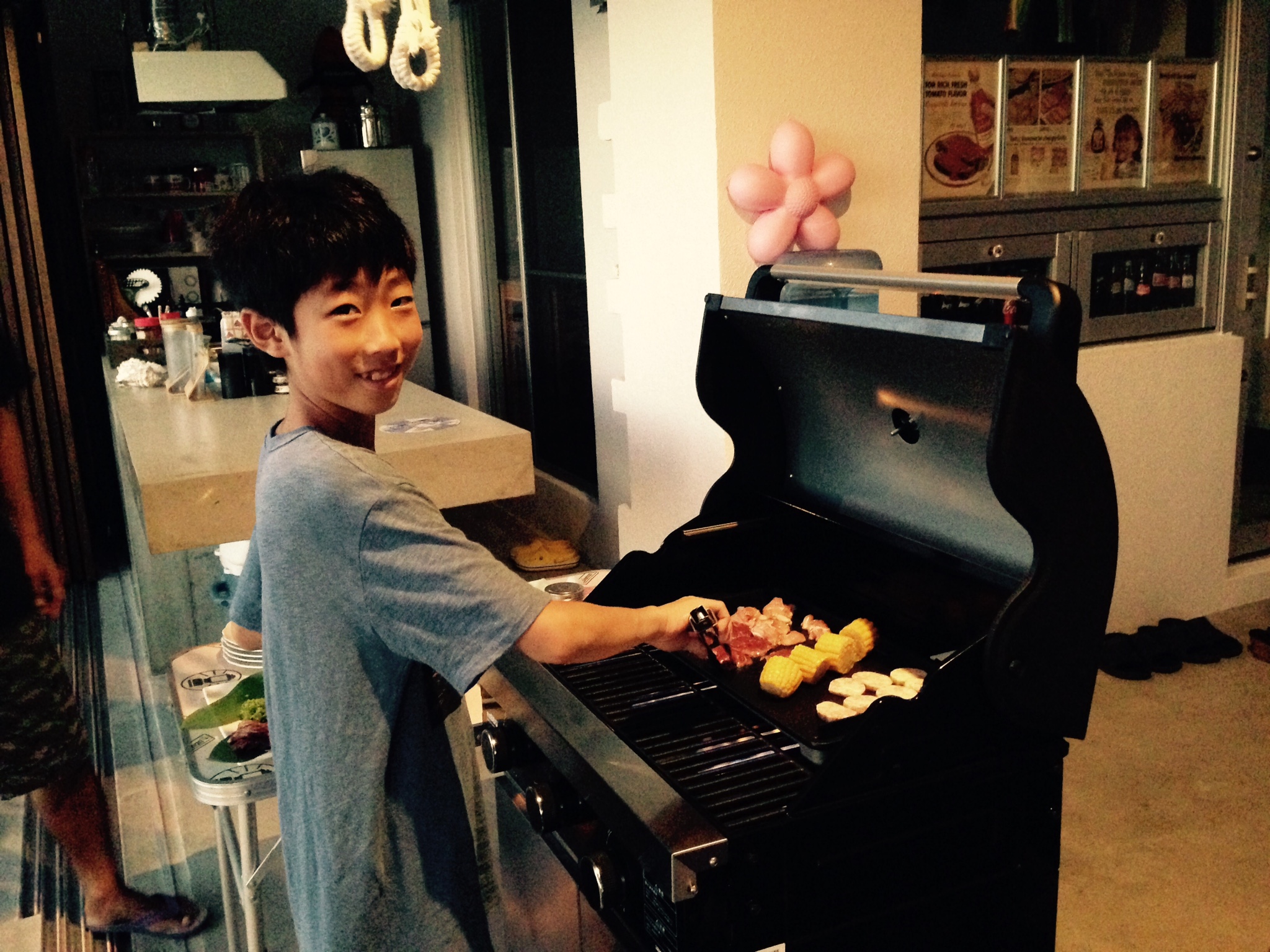 彼は、昼間は合羽になっていたけれど、夜はBBQでシェフになり、