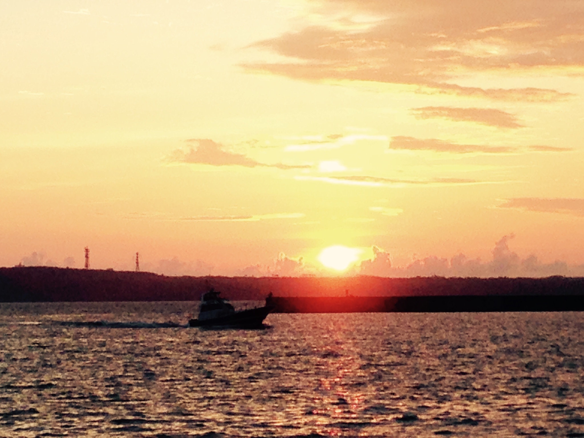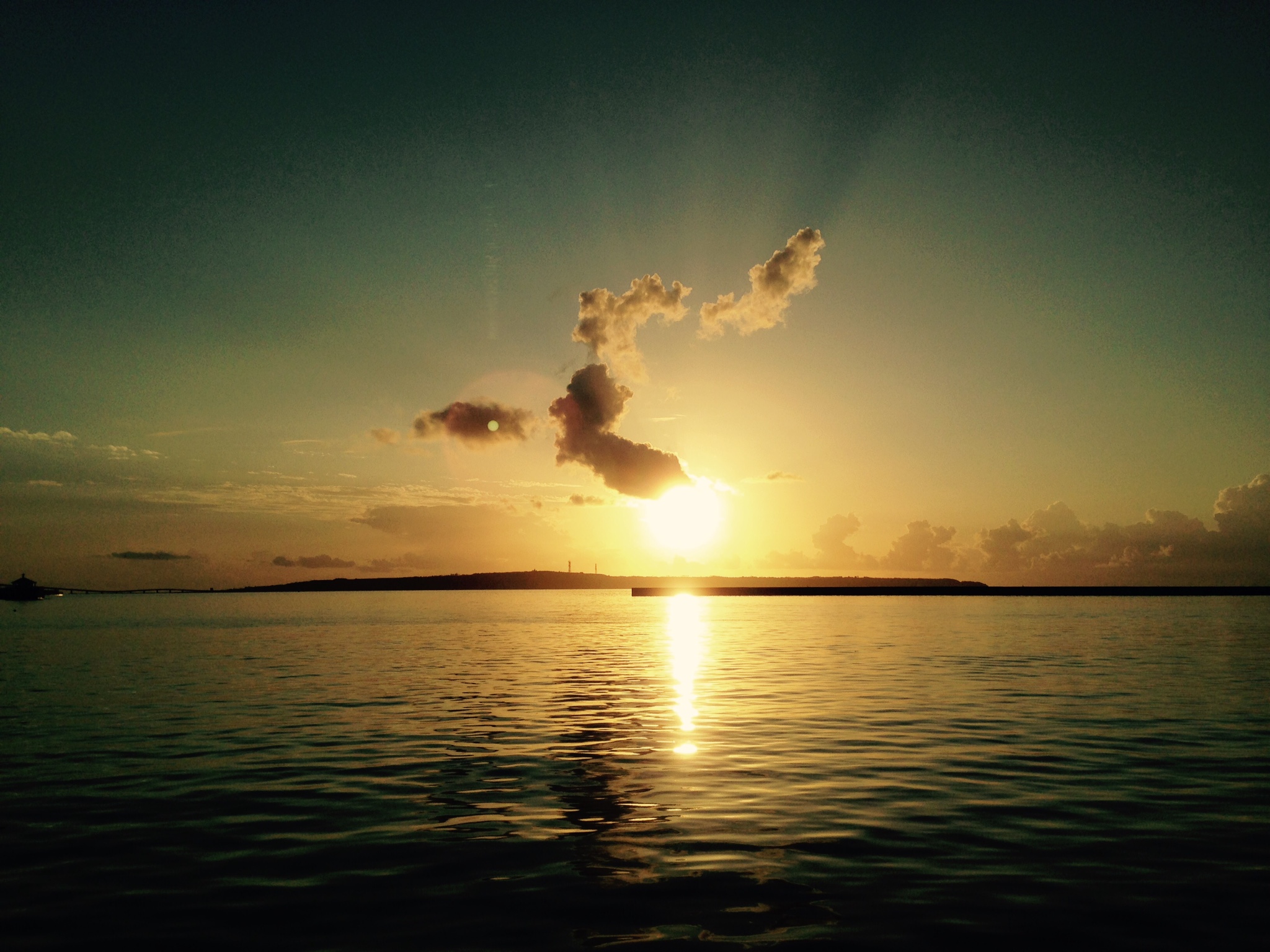 夕食は、夕日が落ち始める時間からスタートがお勧めです。今の時期は、正面に見える伊良部島に日が落ちます。