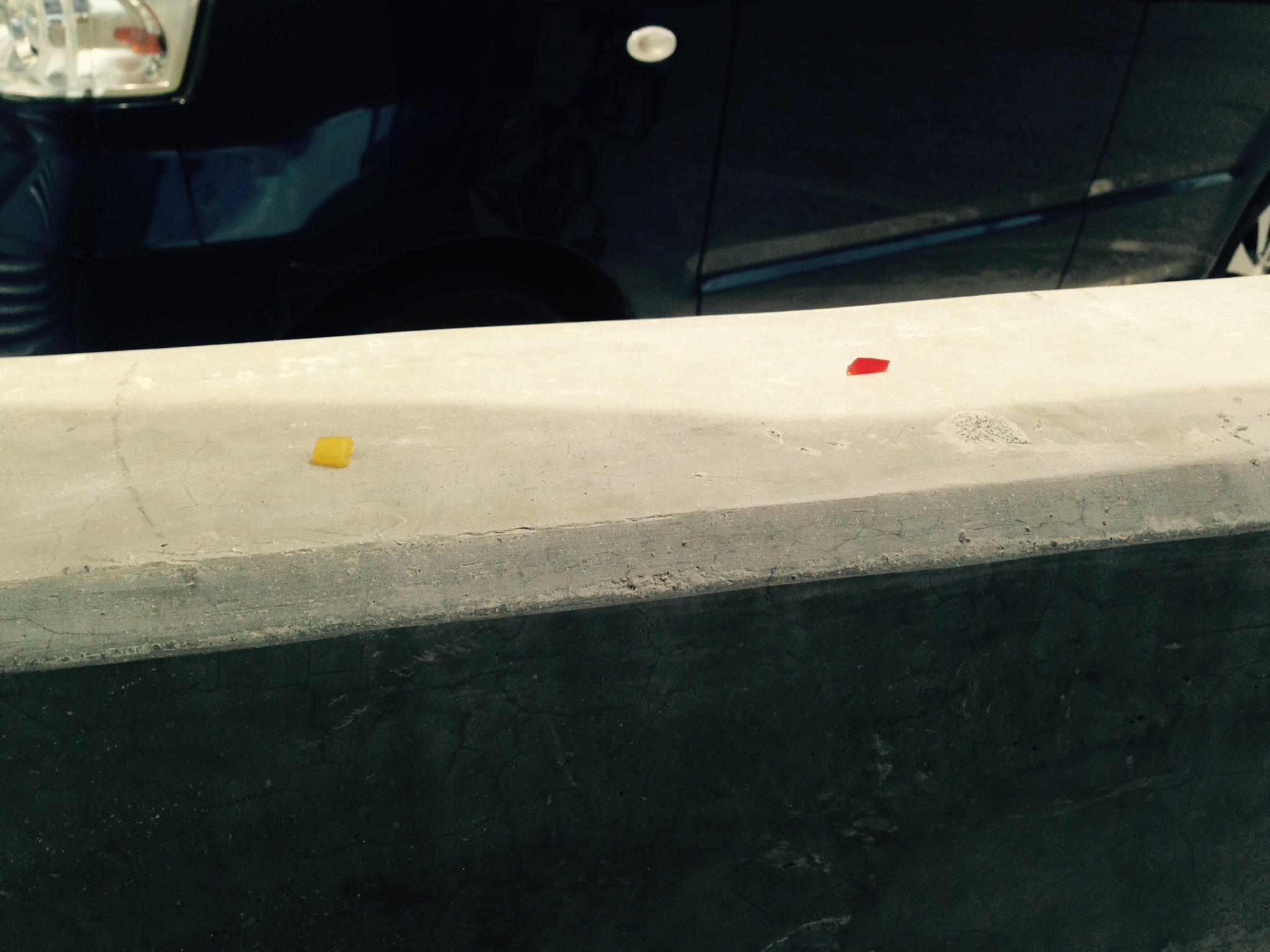 朝食に入っていたパプリカを並べる。友達になるにはまず賄賂が・・いや、贈り物が必要だ。