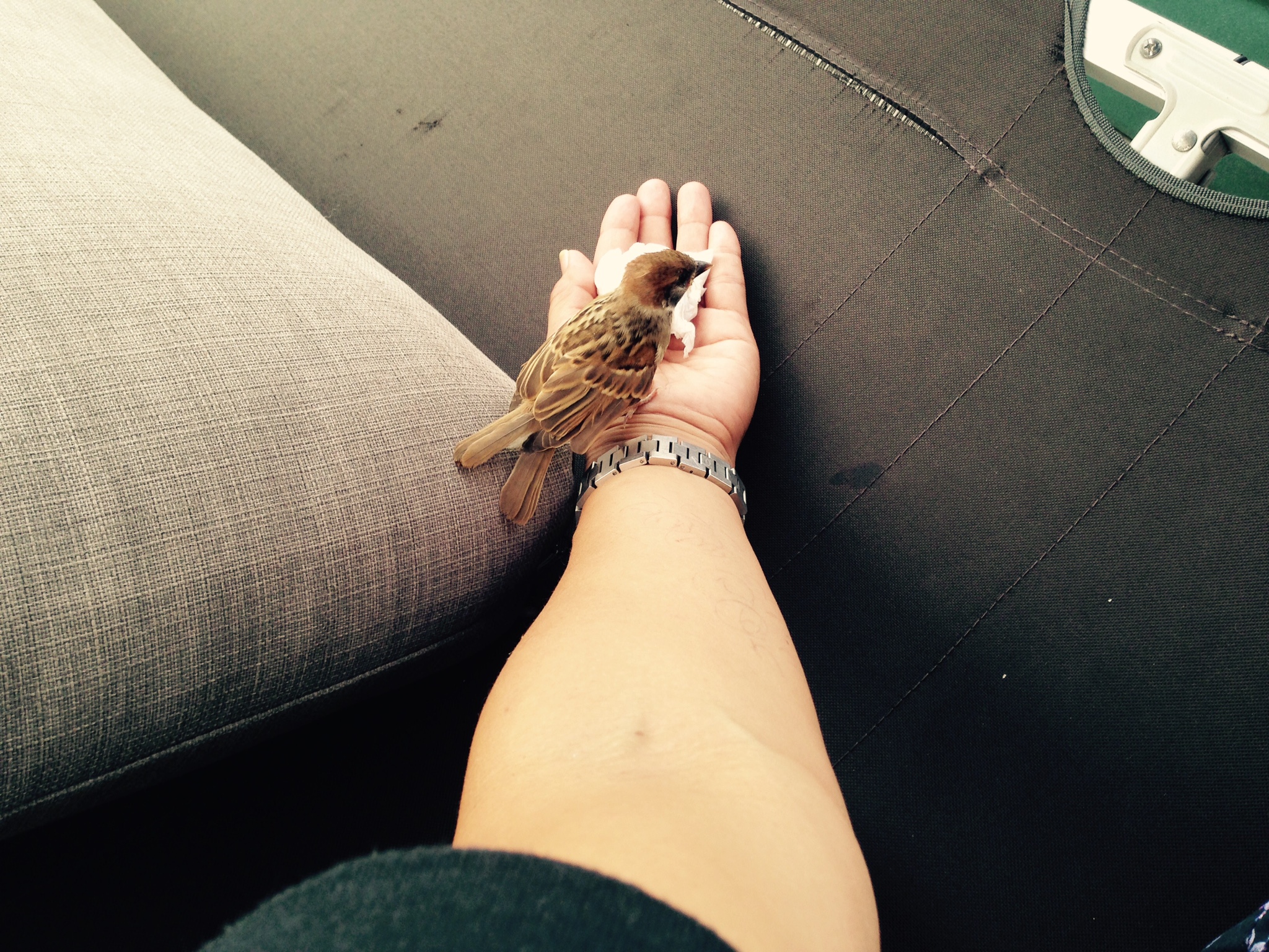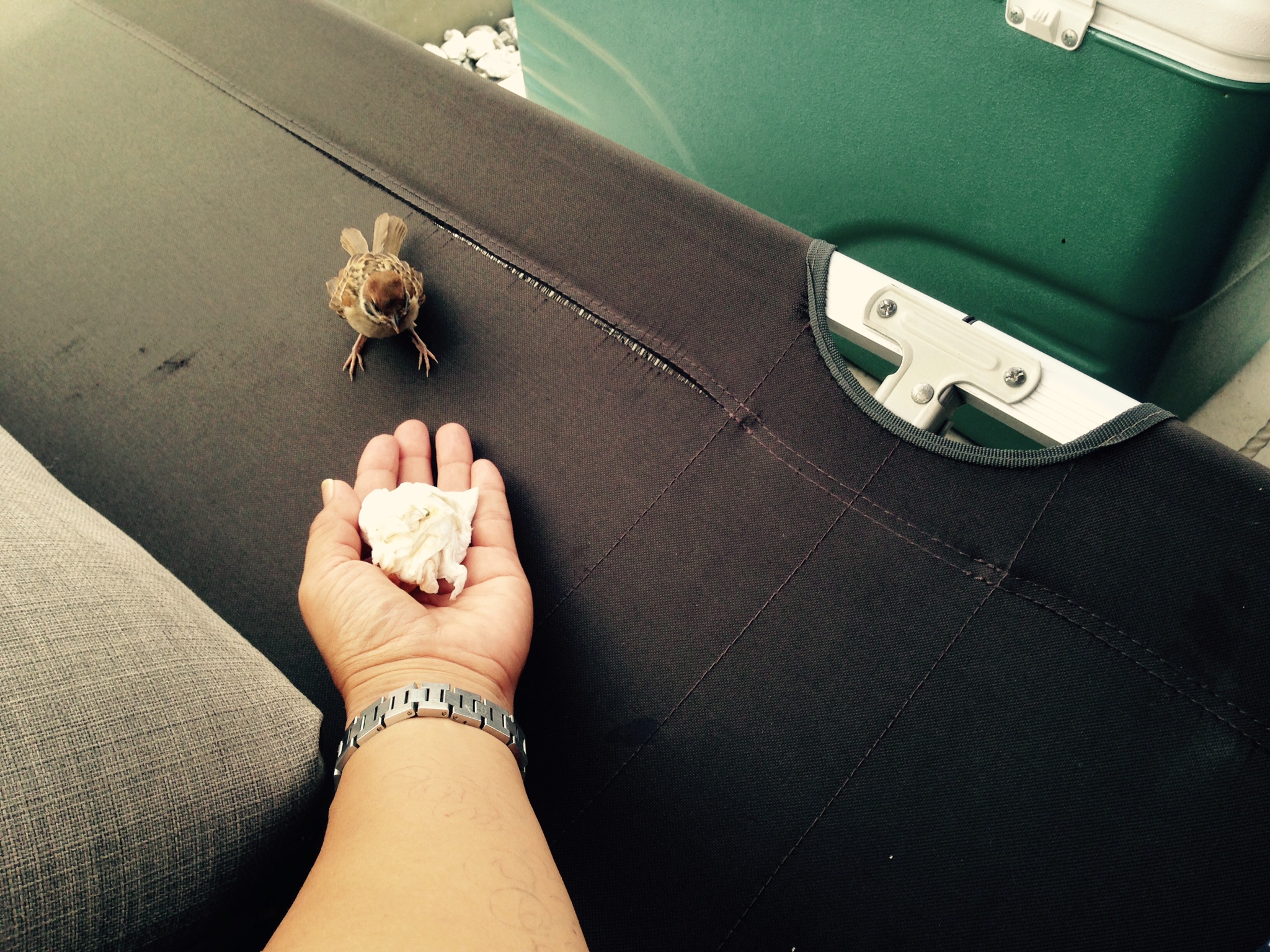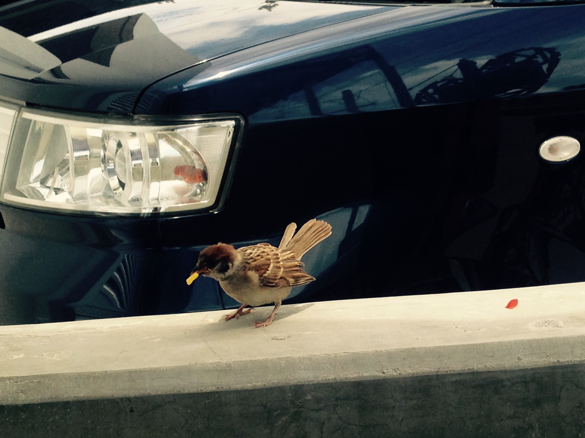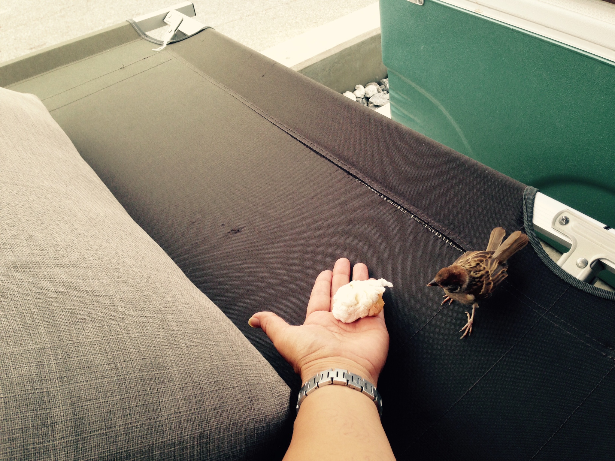 宿のテラスによく来る雀君。まずはこいつとから始めよう・・。