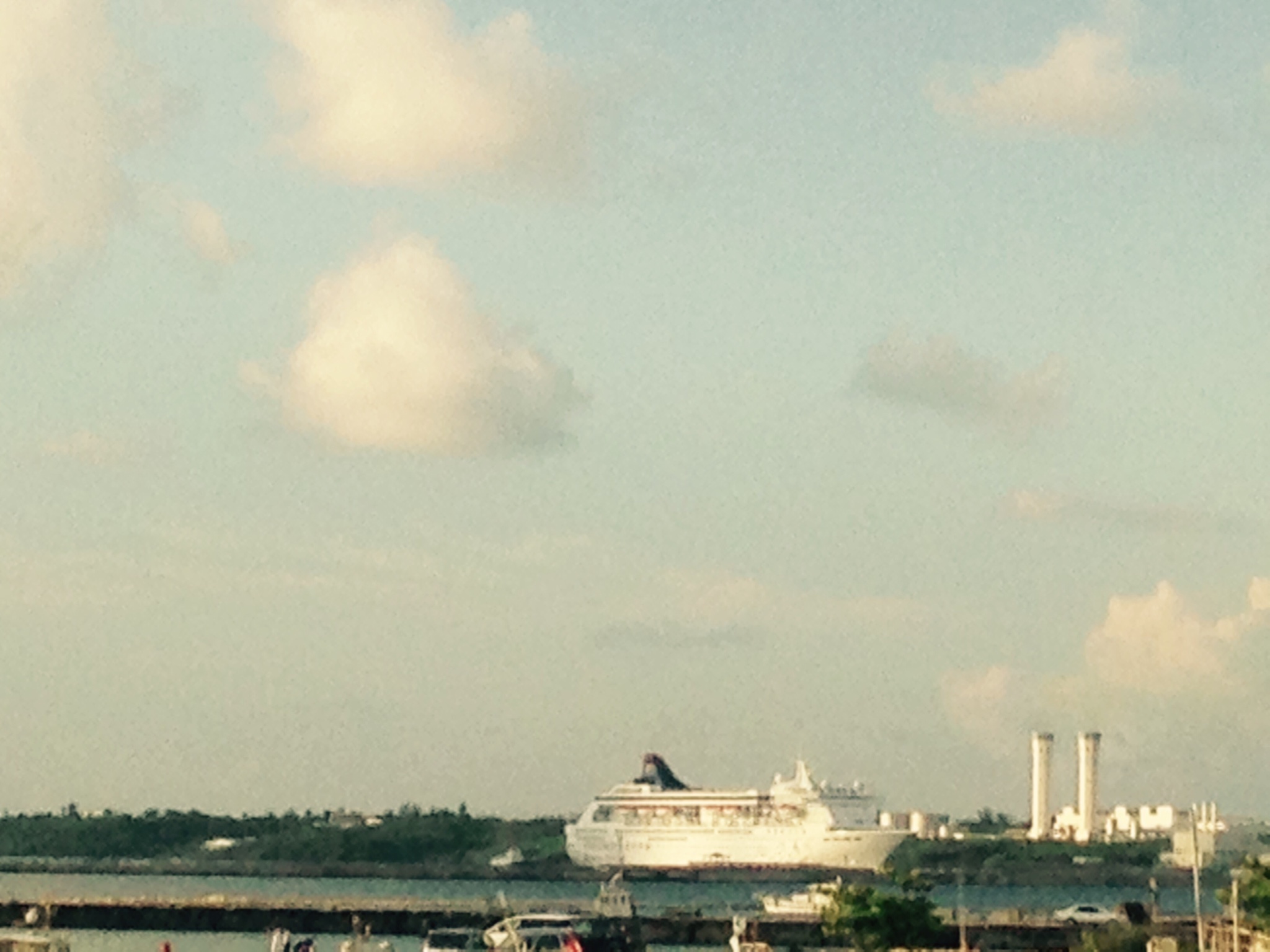 ・・・そして、最近は、クルーズ船が近くの平良港から発着をするのも楽しめます。暗い夜に帰ってくるクルーズ船のイルミネーションはとても綺麗です。