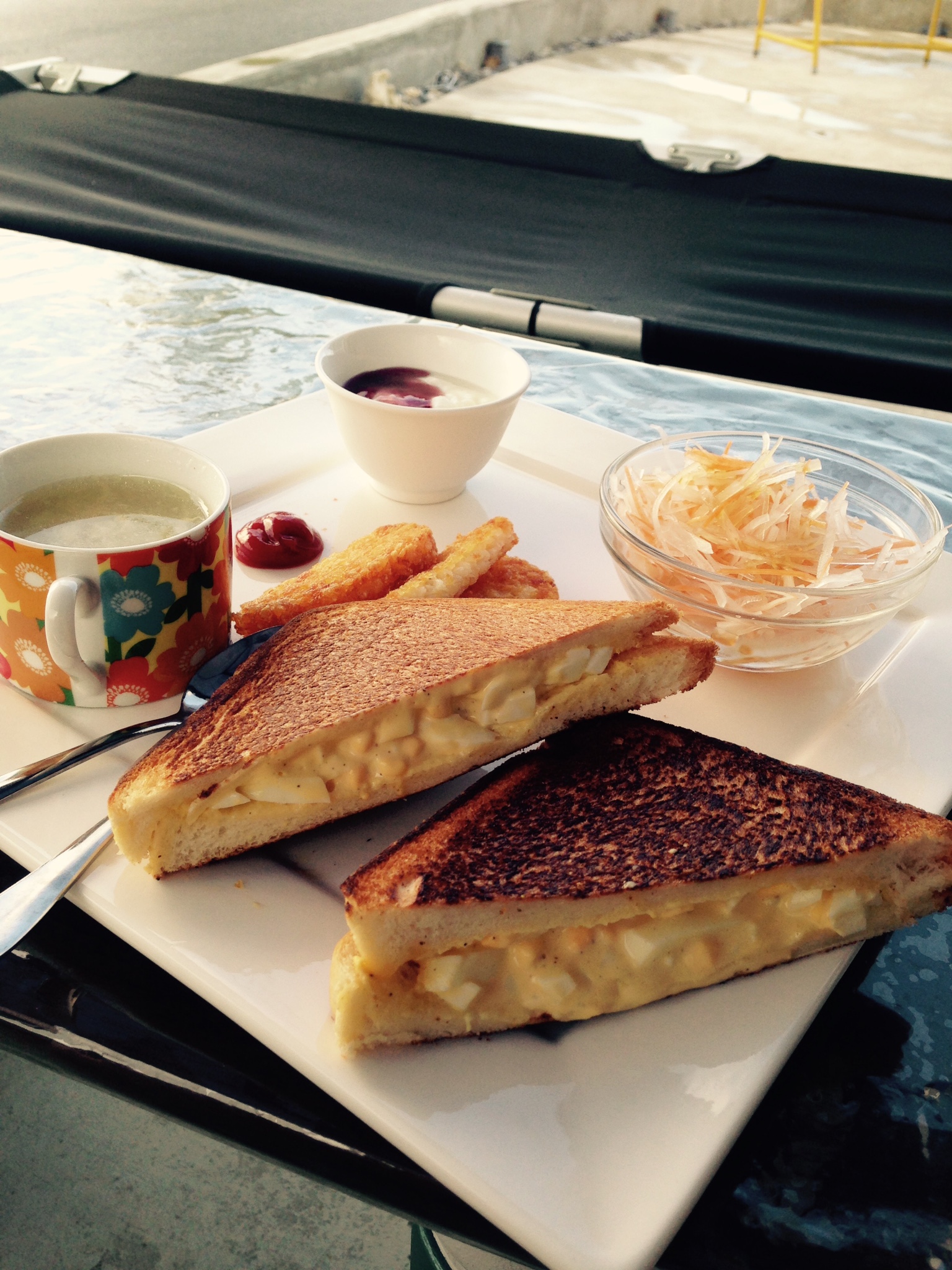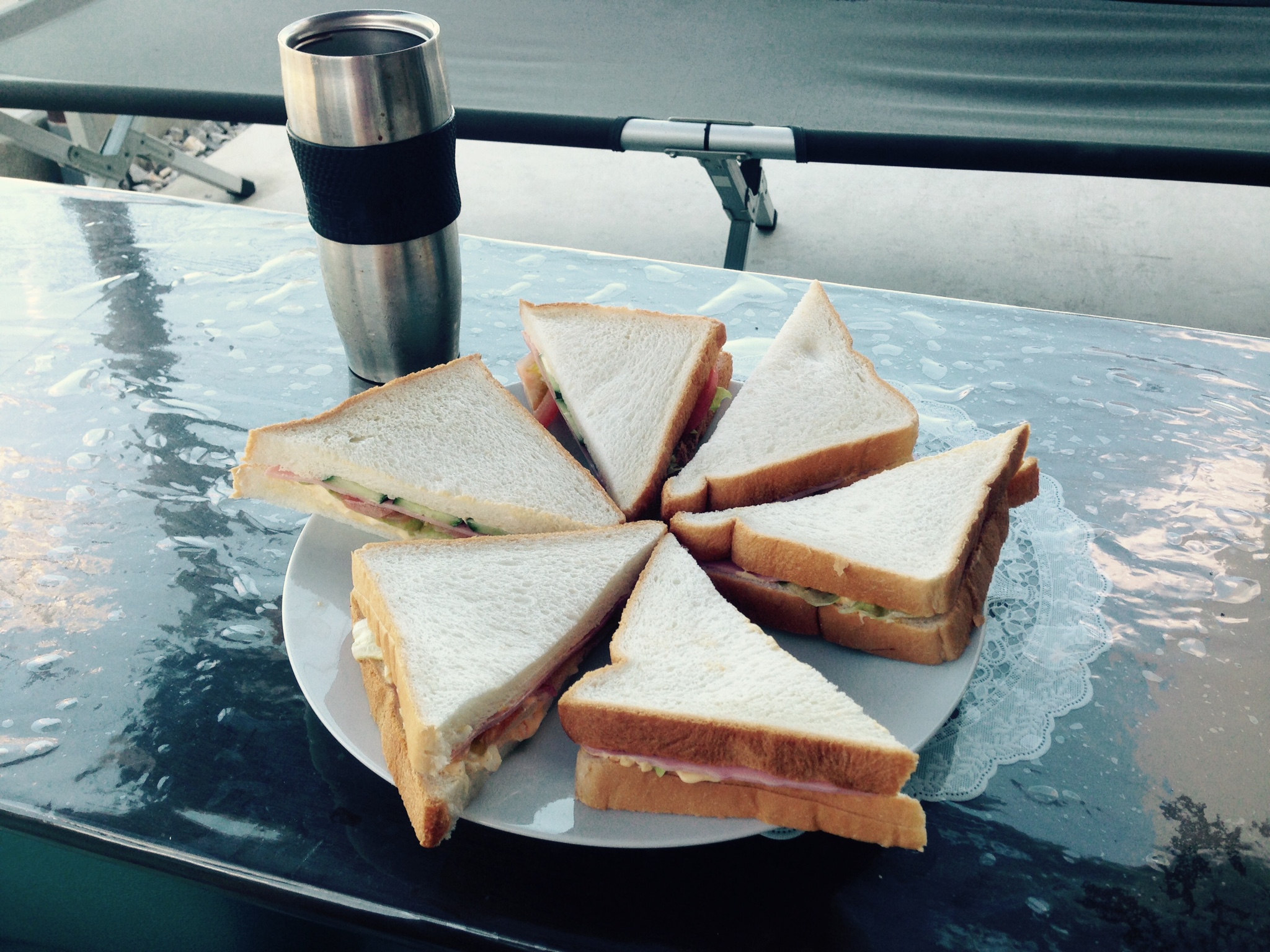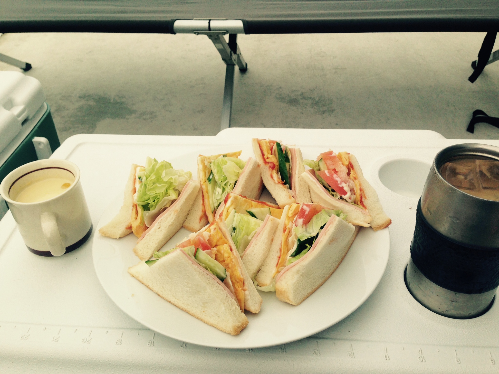 朝ご飯はモリモリ!!と言っても、これはやりすぎ!!サンドイッチの花が咲いていた。