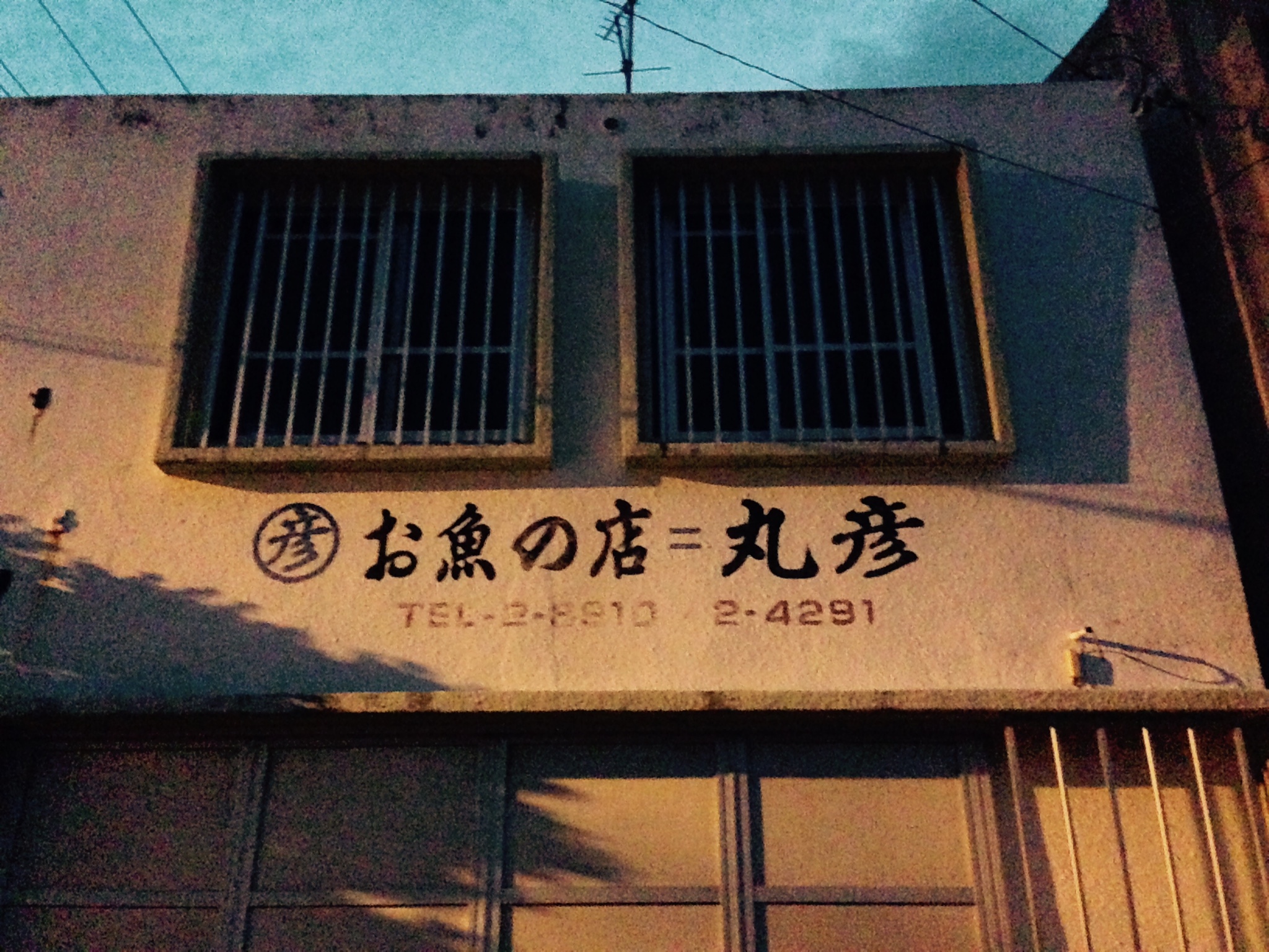 お魚のお店=丸彦・・・という看板を発見。看板にイコールが書いてあるのを初めて見た。しかも、丸彦だから、丸の中に彦が書いてある。ナイスなセンスだ。
