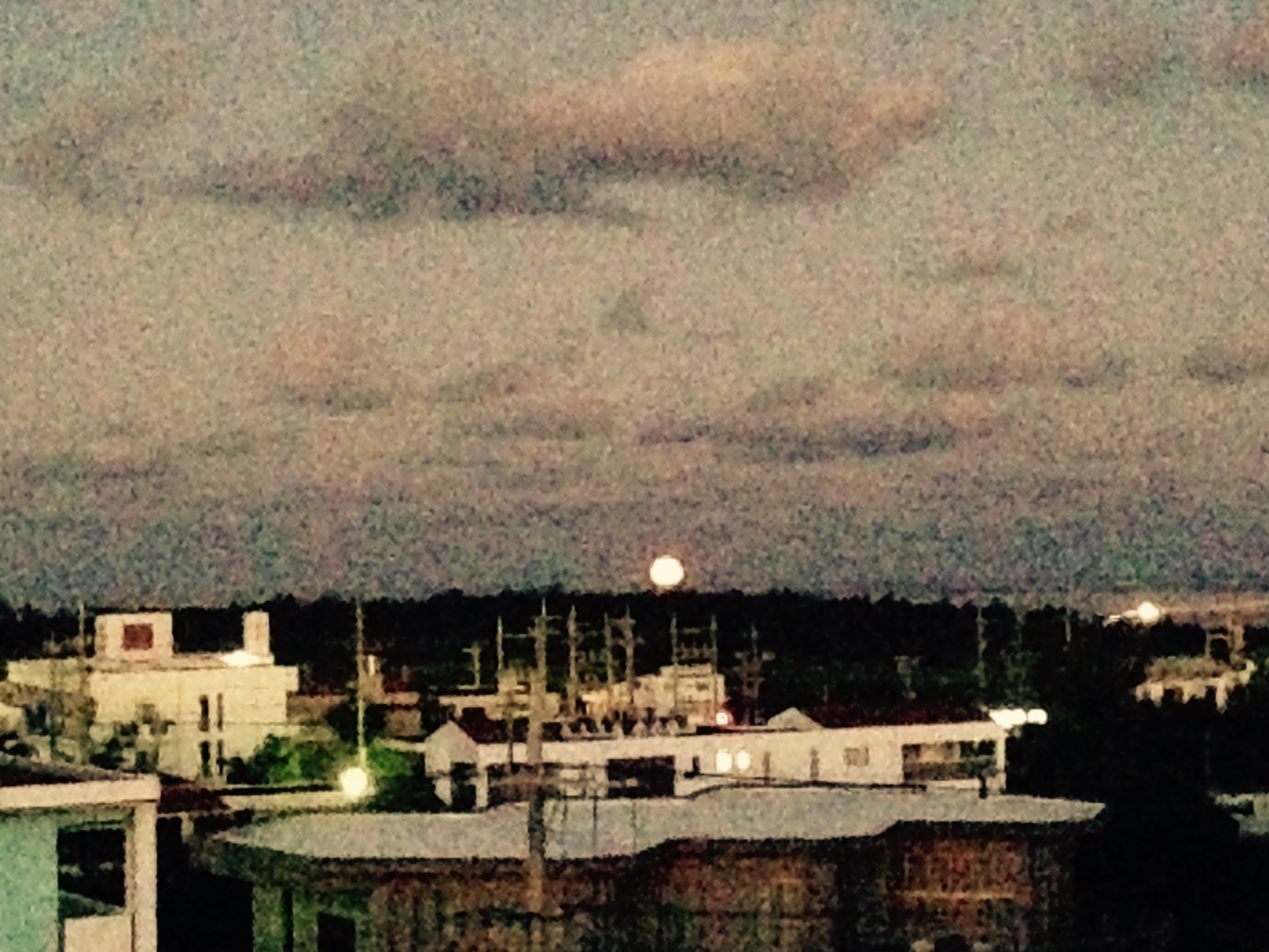 朝焼けを眺め、西の方を振り返ると、まだ、お月様が見えた。