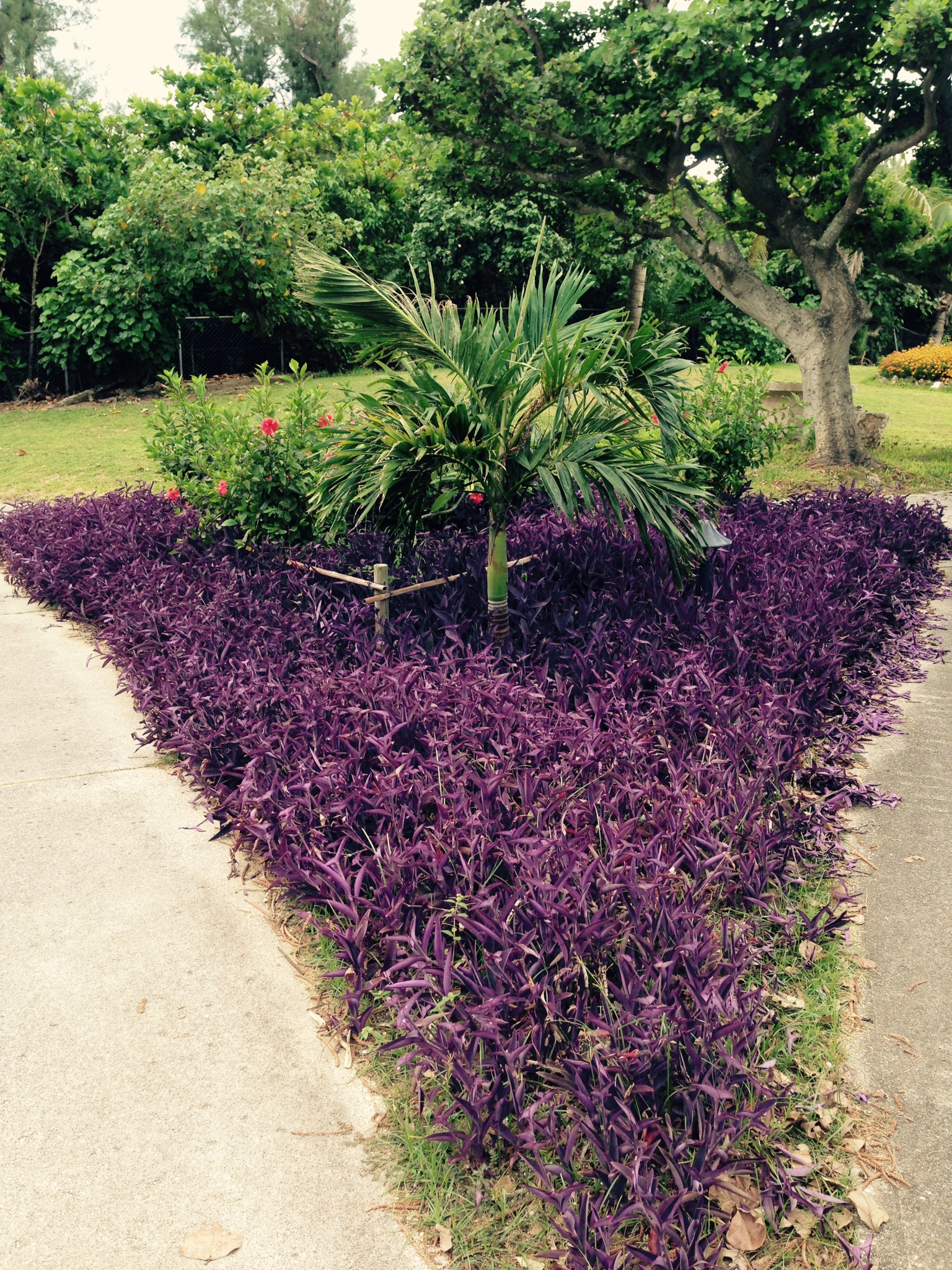 宿に向かっての帰り道、ヤシの木の道路を登りきると、下り坂の先に海が開けていて眺めがいい。