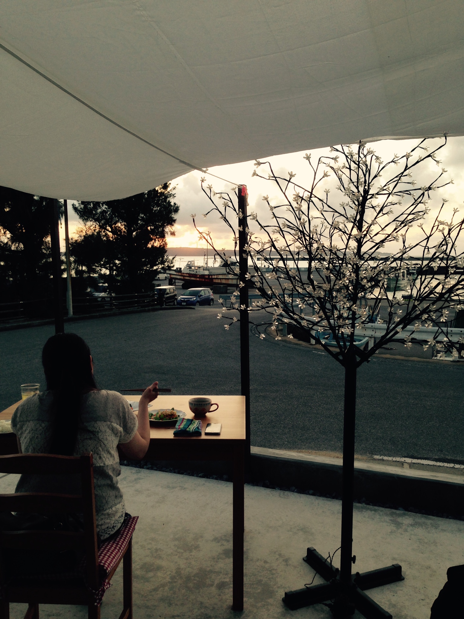 夕食も海と夕日を眺めながら頂きます。