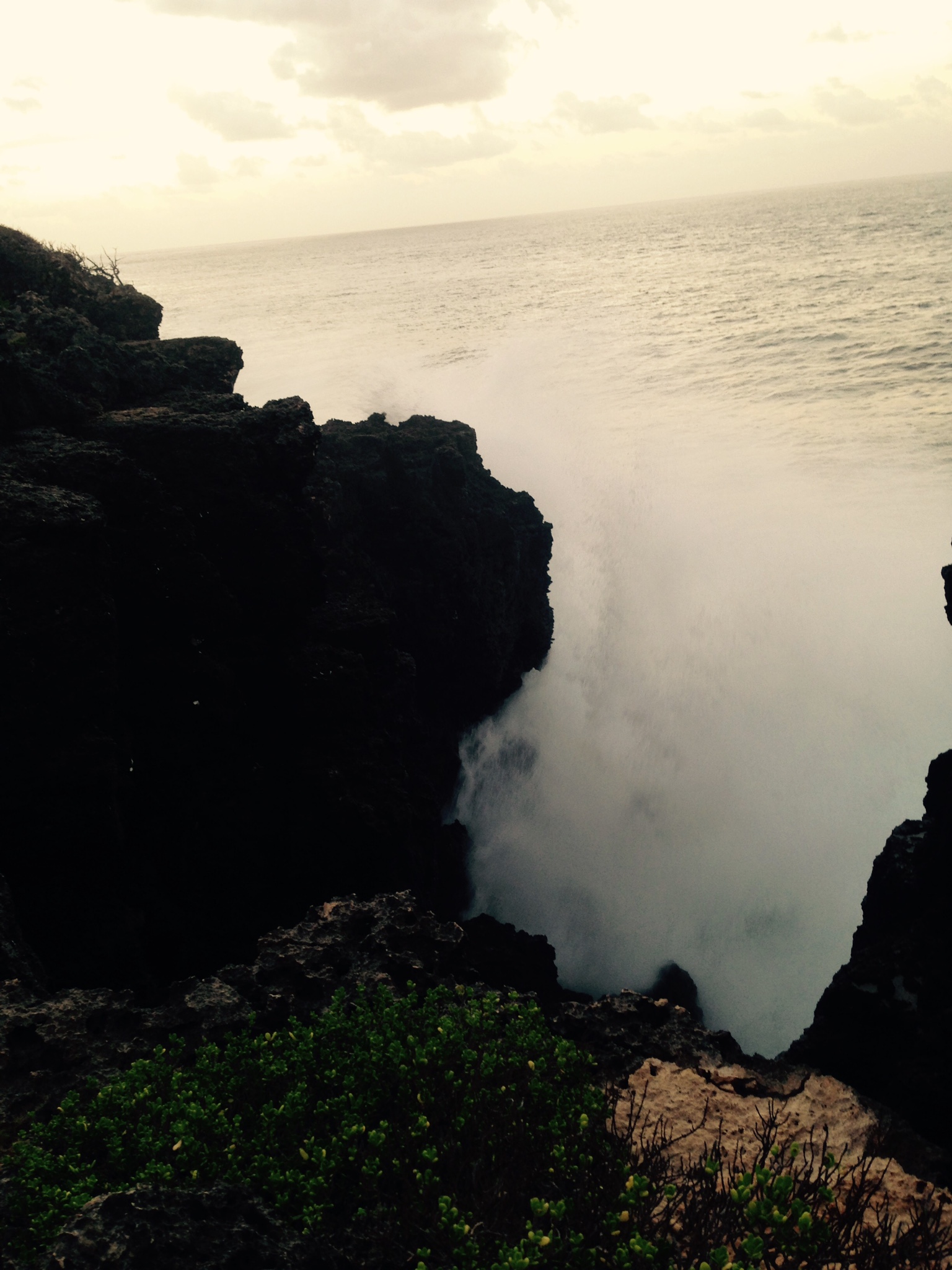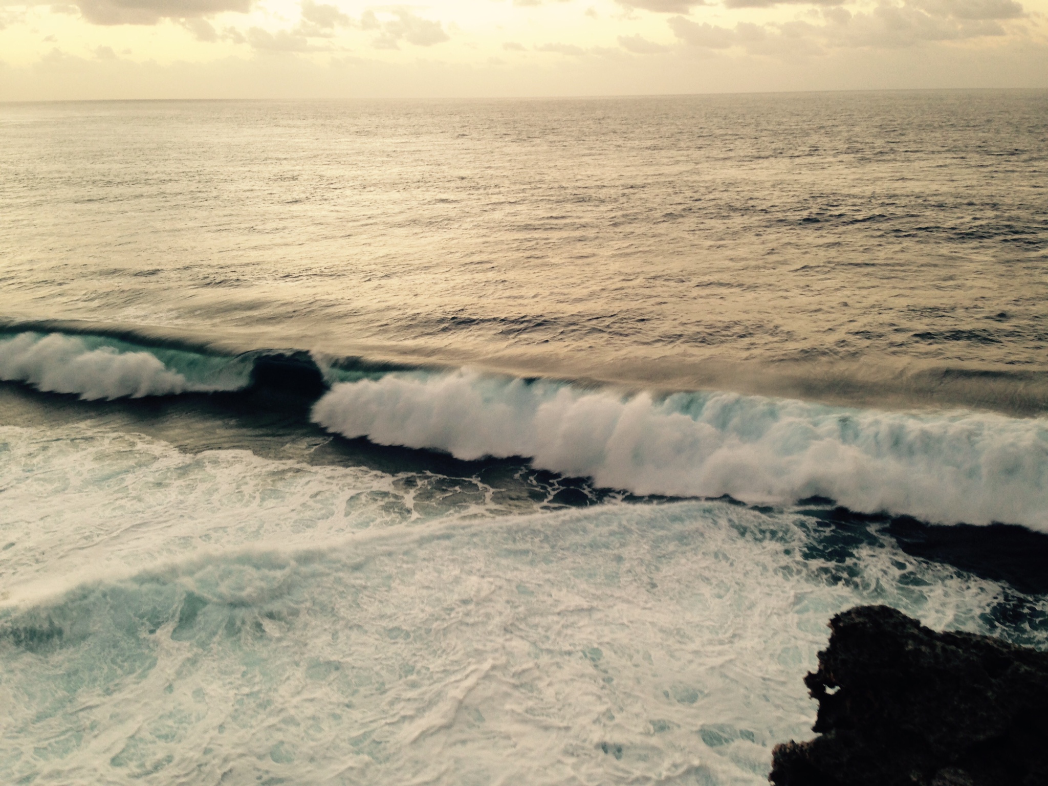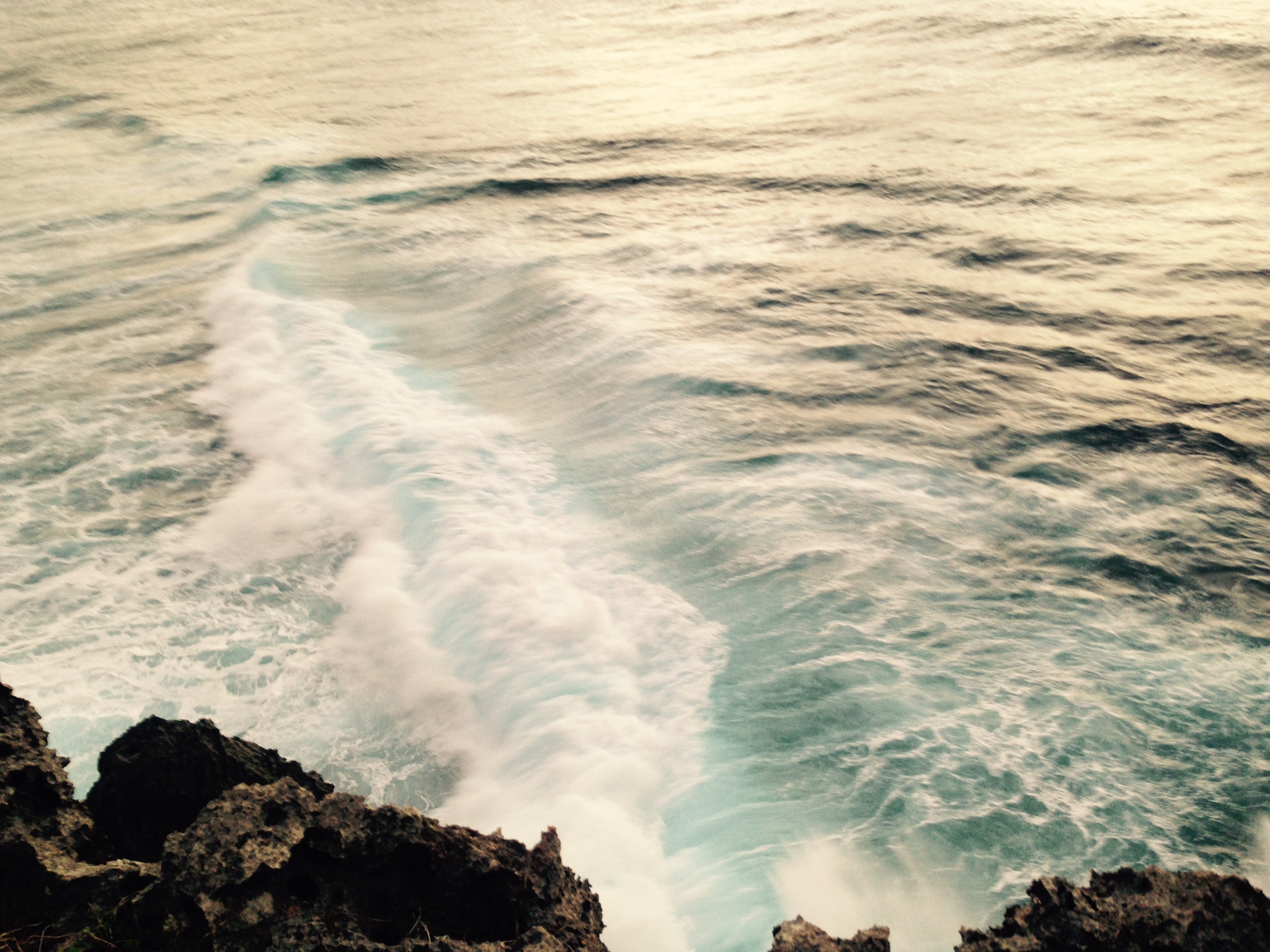 東シナ海の側は「ビッグウエンズディー」だった。高く大きな波が立ち、迫力満点。驚いたのは、波の部分がすこぶる綺麗な「クリスタルブルー」だったこと。こんなに透明で綺麗な色の波を初めて見た。