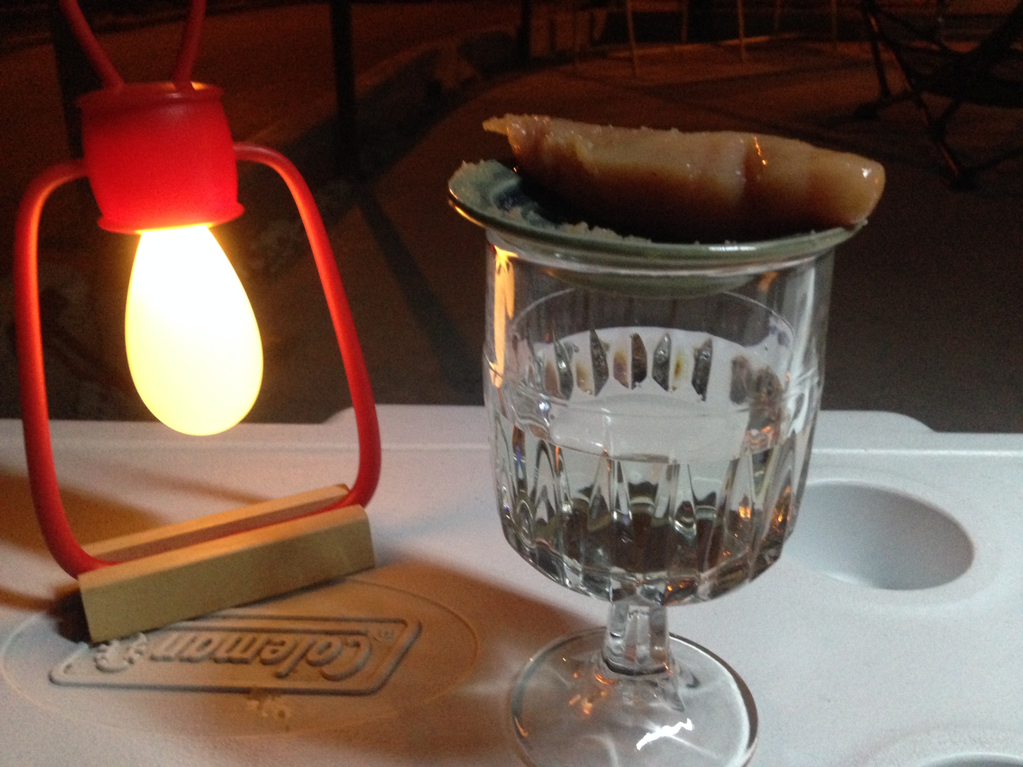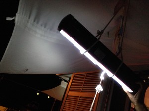 すると、トンボが照明に寄ってきて、自分でグルグル回って目を回し、墜落をした。