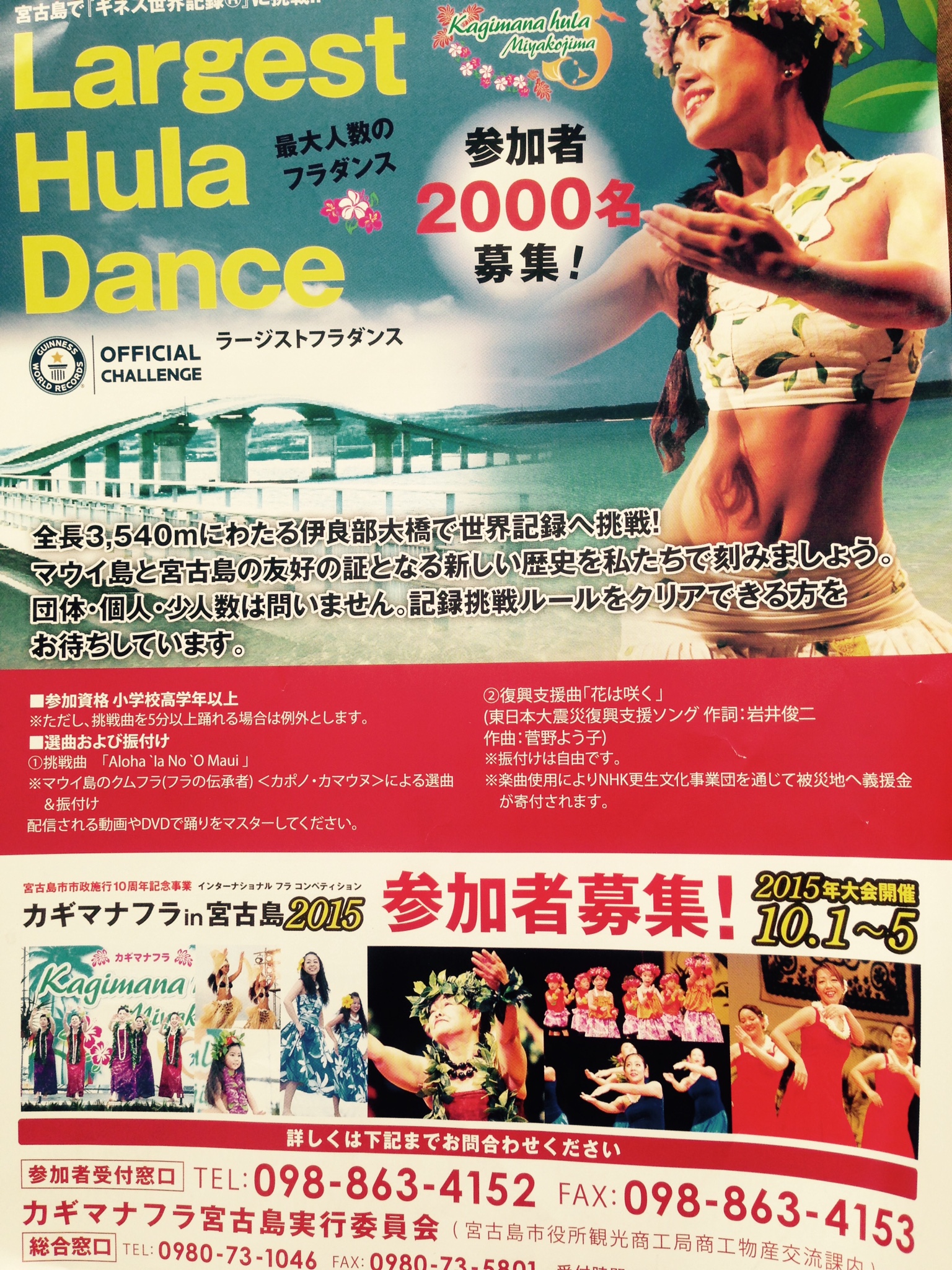 先日、今年出来たばかりの無料で渡れる日本一長い橋、「伊良部大橋」でフラダンスのギネスに挑戦!!が行われました。