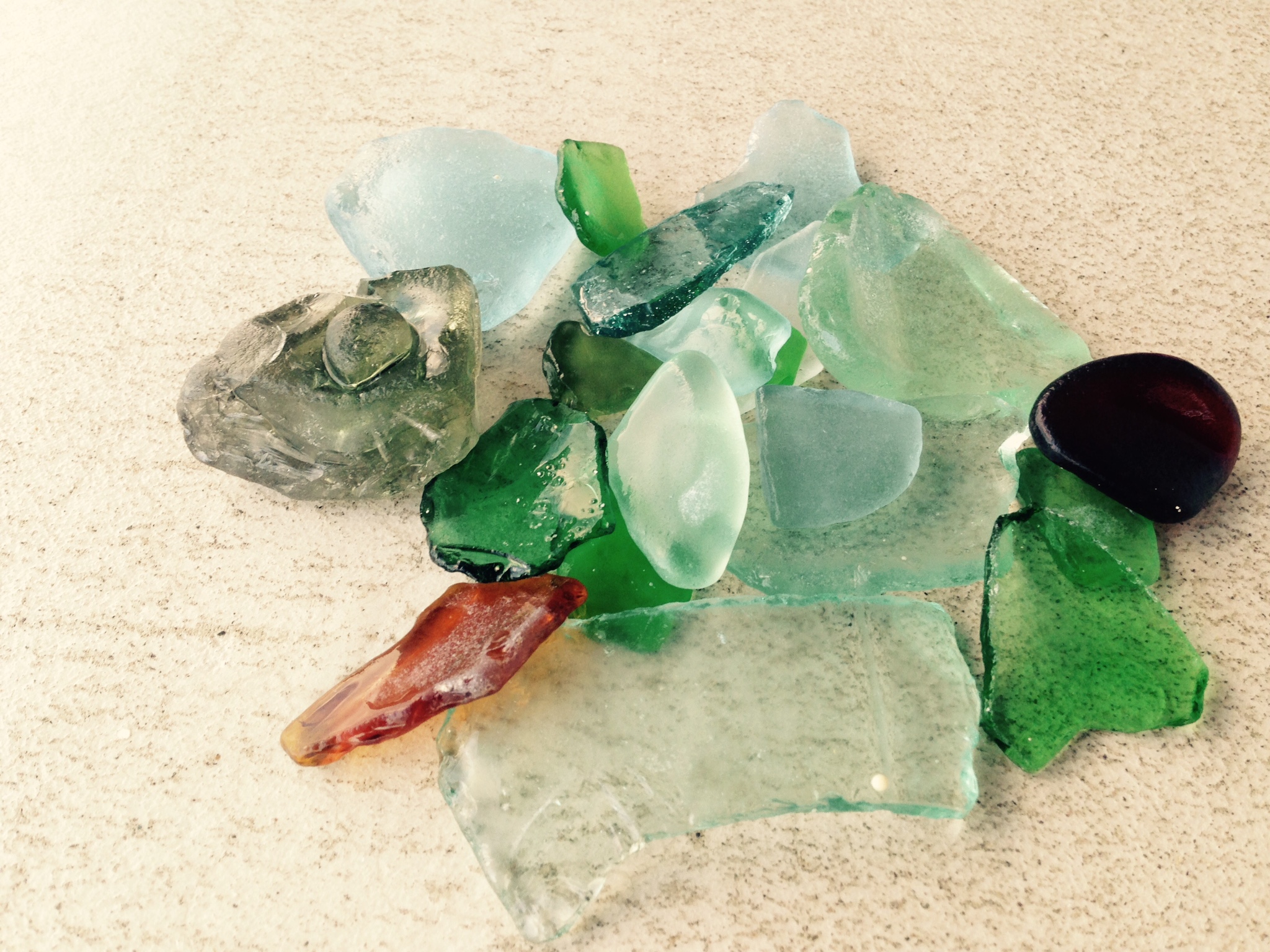 今回のお土産は、沢山の貝殻と、ガラスの破片、穴あきサンゴ。