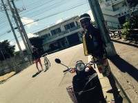 免許がないため、レンタルバイクとレンタル自転車で伊良部大橋を渡ったゲストさん。荷物が多いので、ライフジャケットは着用で出発!!