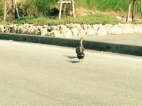 途中、前の車が道路の真ん中で停車している。「また、おじぃの車か?」と思いきや、その車がどいた時に気が付いた。