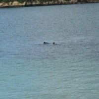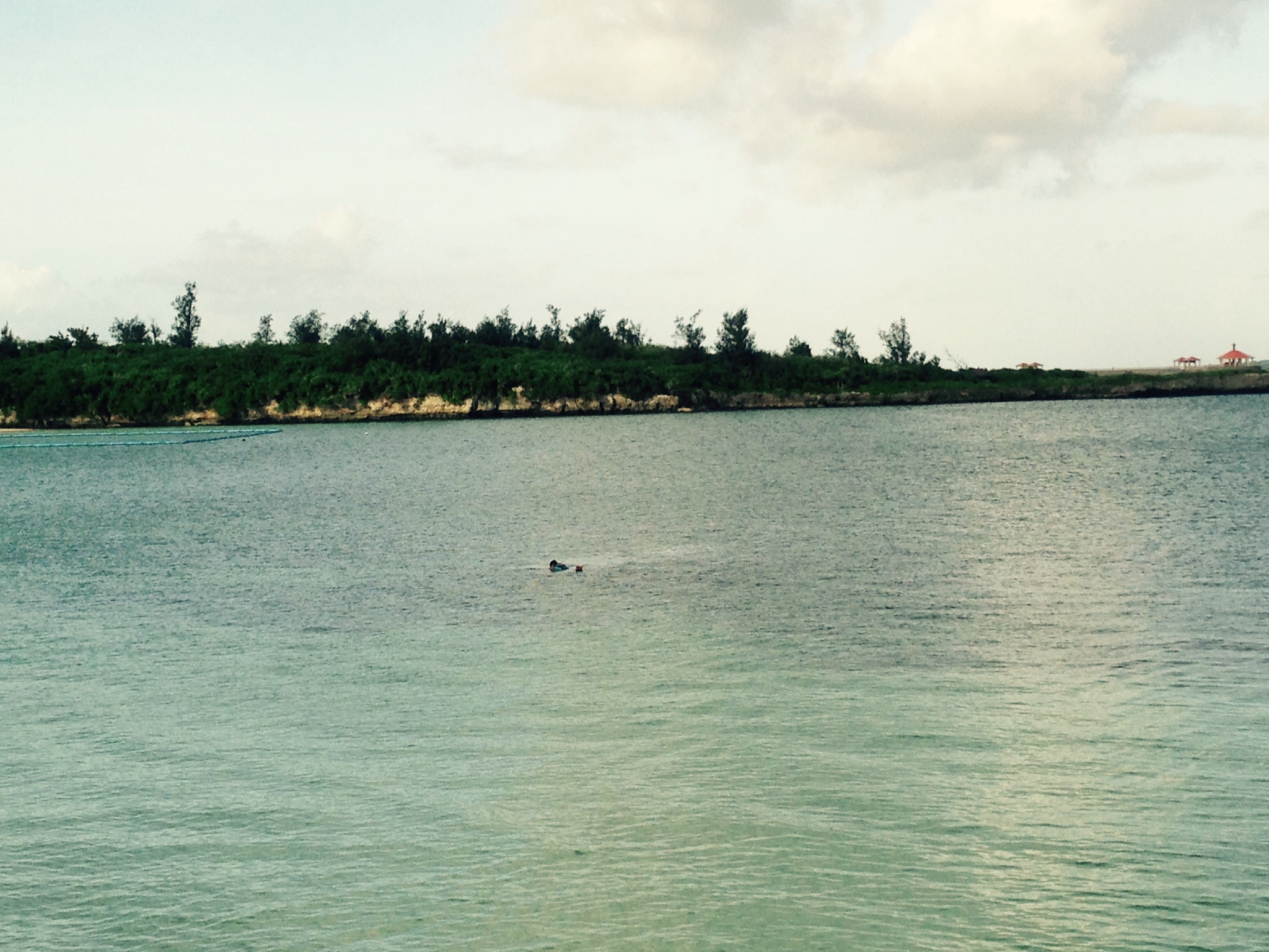 運よく、ウミガメが海面に顔を出し、巨大な魚が悠々と泳ぎまわる。釣りをするにはもってこいの場所で、自作の釣り場の跡が残っていた。