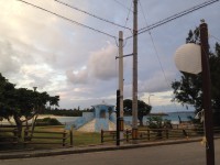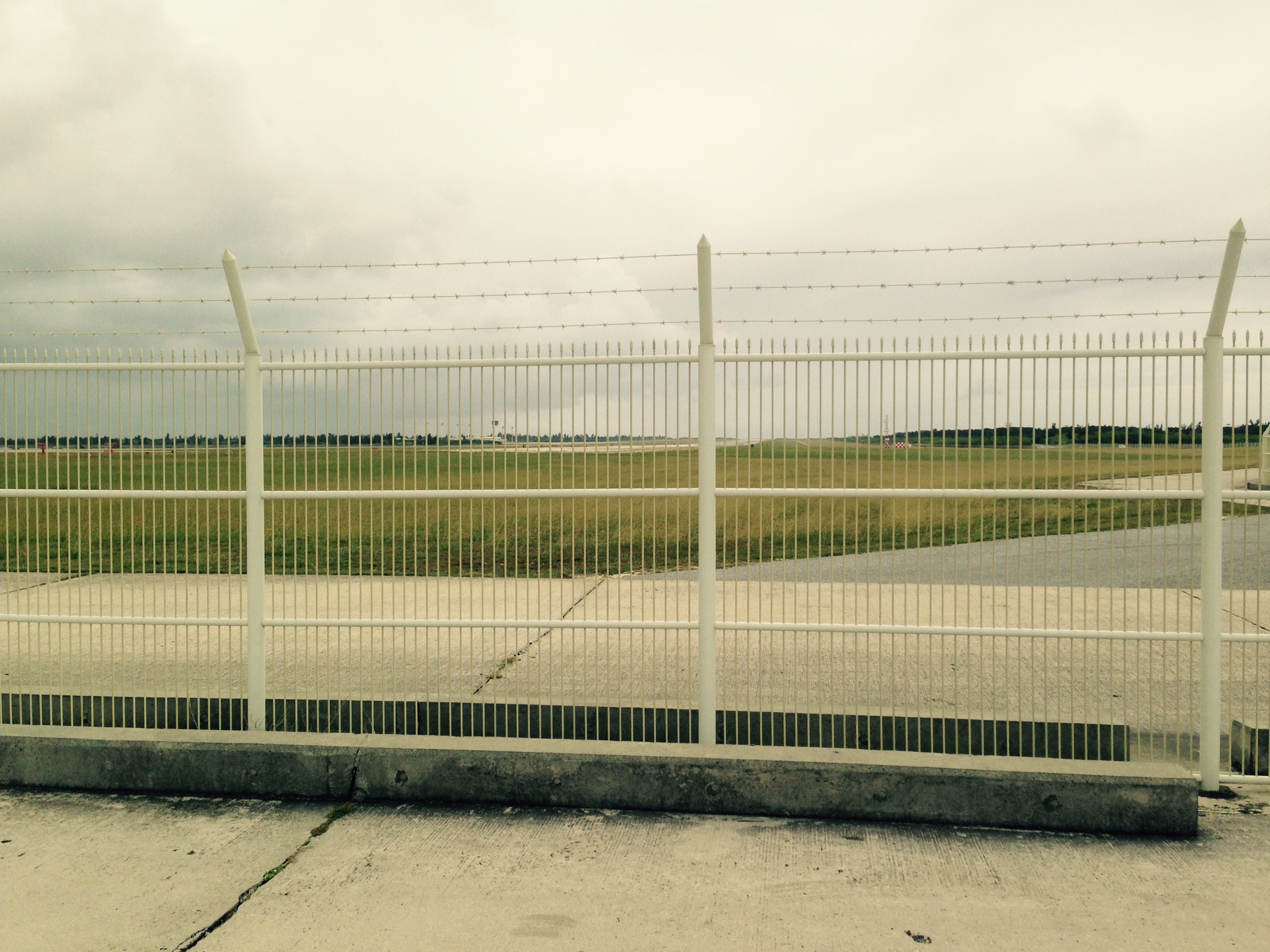 練習用の滑走路が海に向かって造られている。風向きによって飛行機が入ってくる方向が変わる。