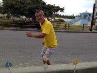 桟橋へ海を眺めに来る人。この人も毎日来ます。