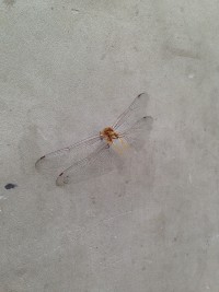 ふと見ると、テラスにトンボが迷い込んでいる。何故か胴体のない目の前のトンボの写真を撮って、今日の日記は終了~~~~!!