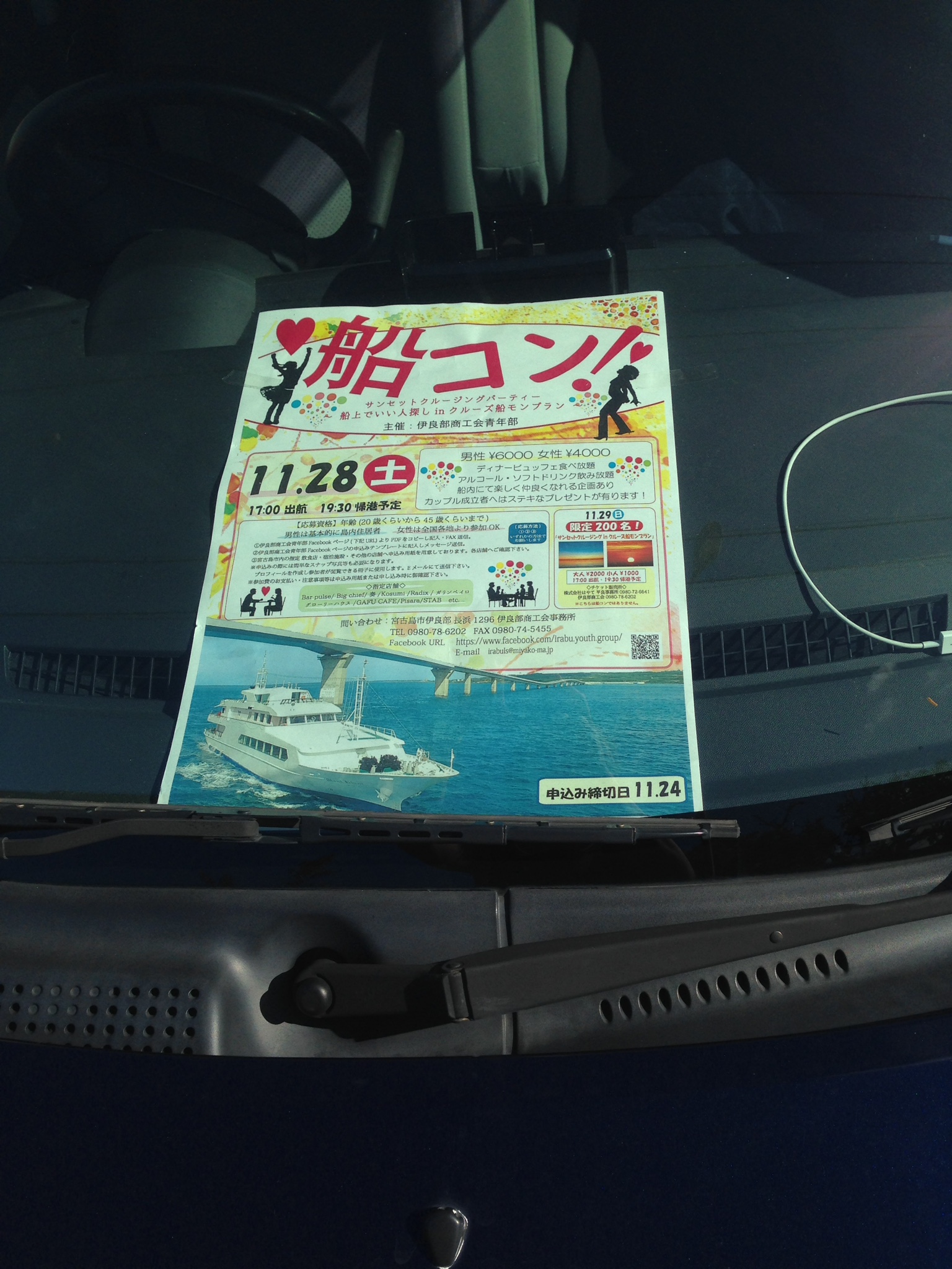 宿の車は、11月28日に行われる「船コン」の宣伝カーに変身しました。