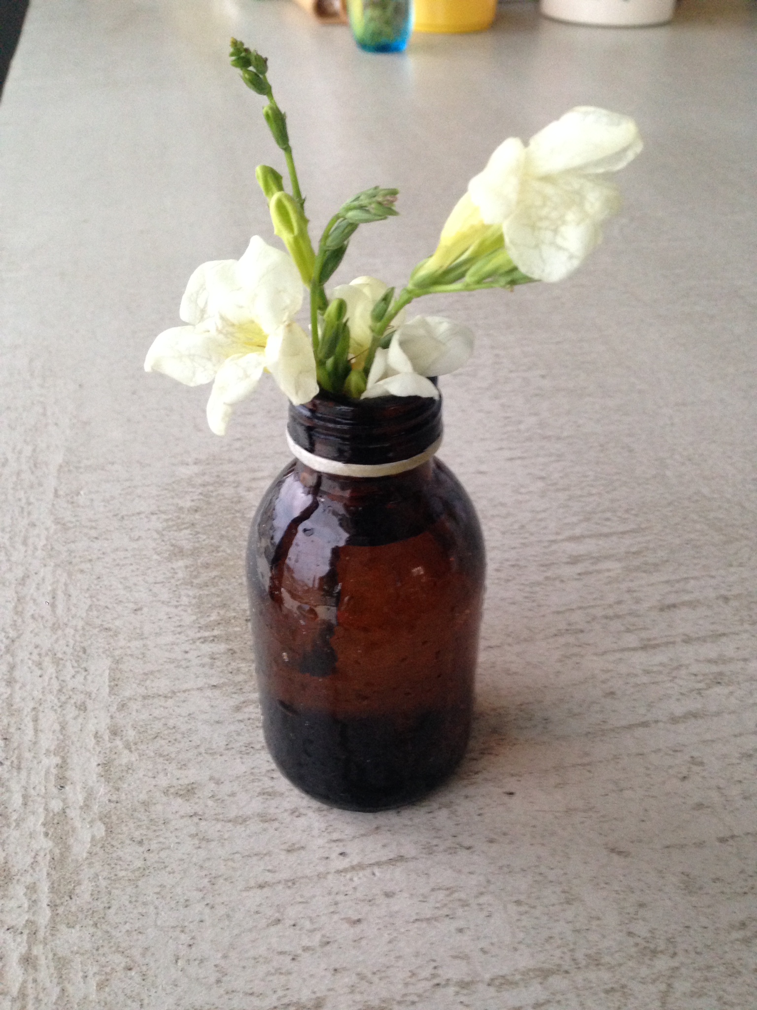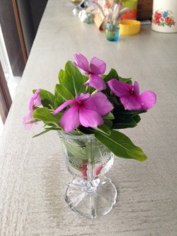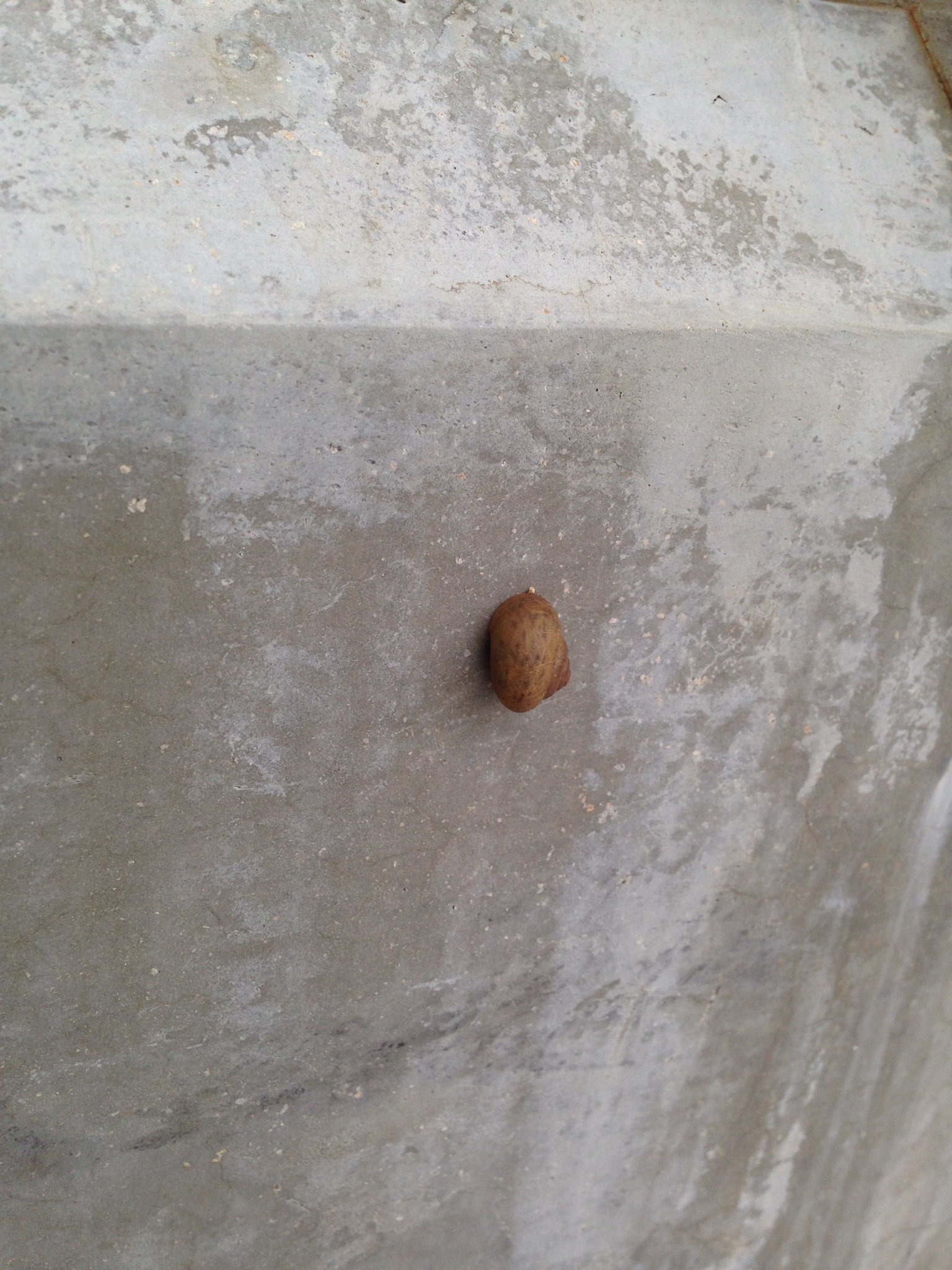 朝食を食べ終わり、左を見ると、塀にカタツムリがとまっていて、