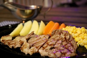 お楽しみの夜になると、すてーきなステーキもついちゃって・・・