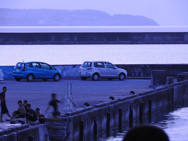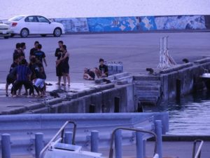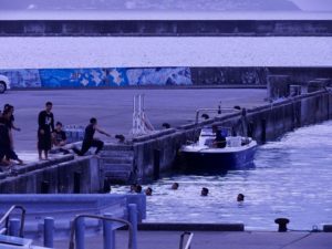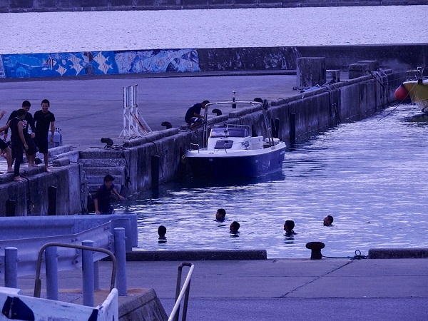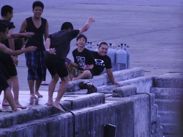 夏の間、宿の前の桟橋は子供達の遊園地と化す。
