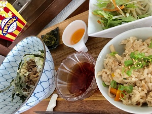 夕食の一例。和・洋・中・韓・島料理とその日によって様々です。