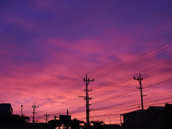 急いで外に出てみると、宿の後ろ側に奇麗な朝焼けが・・・・。