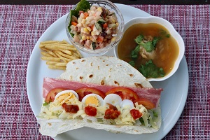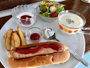 ポークランチョンミートの「海が見えるレストラン HELL’S KITCHEN(ヘルズキッチン)」では、宿泊の方限定で朝食と夕食をお出ししています。