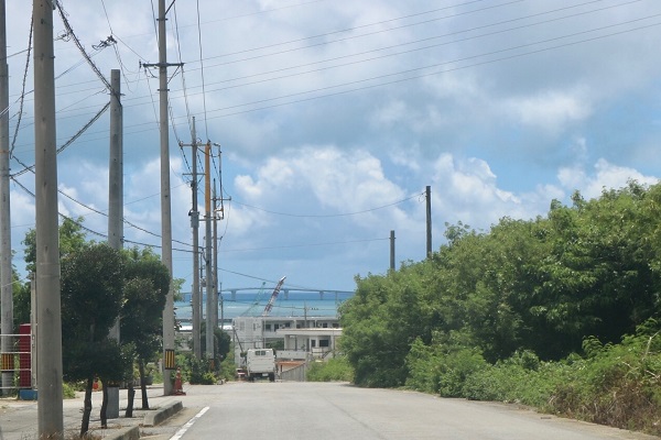 大型客船のテンダーボートが忙しく外国人たちを運んでいる。