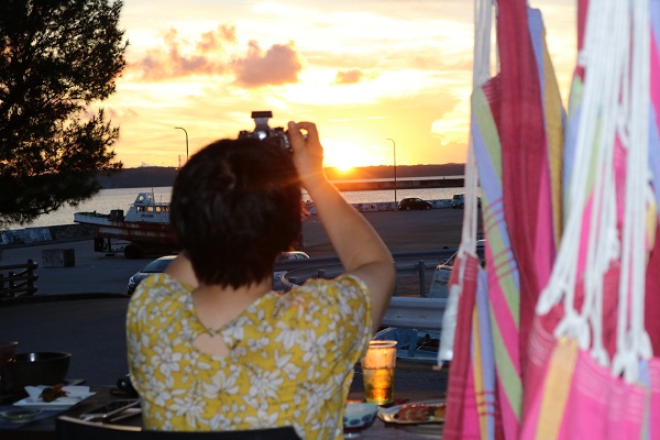 さて、お友達との来島ですが、別々の宿に泊まられたお客様。第一の目的はダイビングですが、カメラも楽しみにしていらしたようです。滞在中、美しい夕空が毎日彼女を歓ばせてくれました。