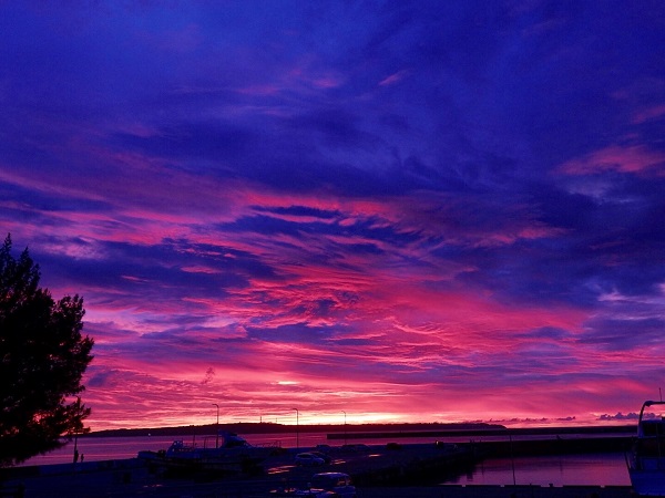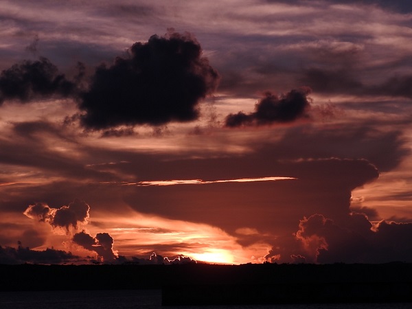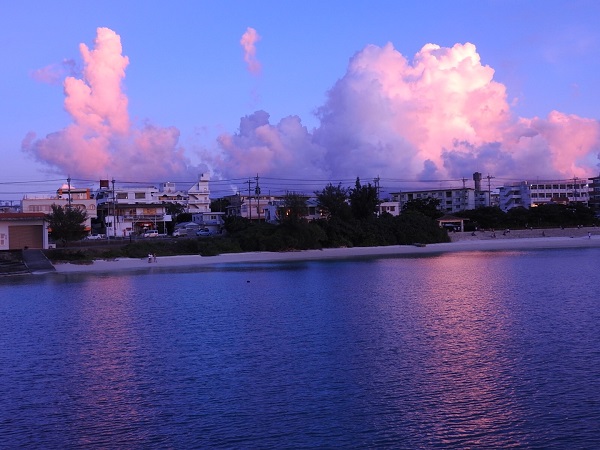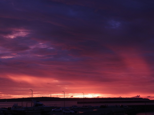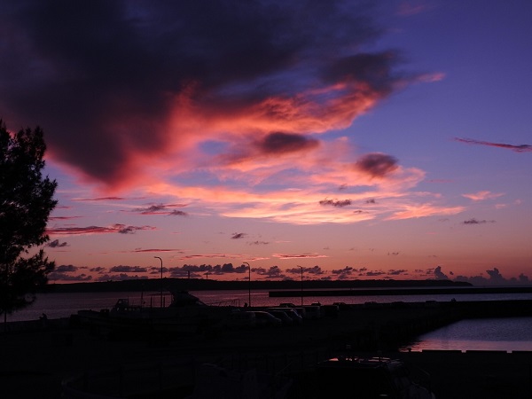 今朝もいいお天気の宮古島です。朝早く、空が綺麗なピンクオレンジに染まっていました。