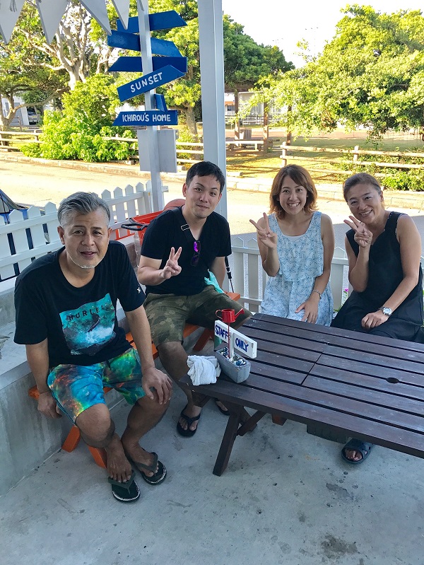 こちらのご夫婦とは毎晩楽しいお酒をご一緒させていただきました。なので、チェックアウトの際は、我が家のリビングでの記念撮影となりました。お仕事柄、なかなかお休みが取れないそうですが、次回は冬のお休みにお待ちしております。ゆっくりのんびり過ごす宮古も是非味わって頂きたいと思います。