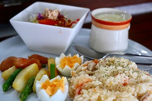 ポークランチョンミートの「海を眺めるレストラン HELL’S KITCHEN(ヘルズキッチン)」では、宿泊の方限定で朝食と夕食をご用意しています。