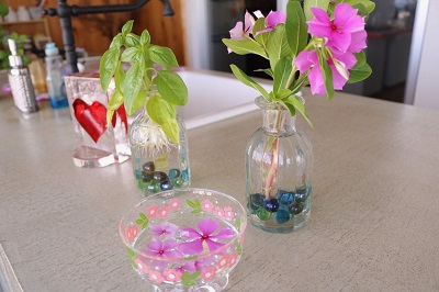 落ちた花びらは、ハーブに添えたり、