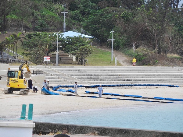 まだまだ海水浴はできるけれど、11月になったので目の前のパイナガマビーチではクラゲ予防のネットが外された。