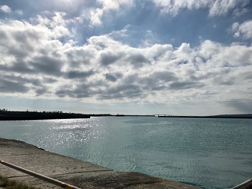 そういえば、工事中の港の進行状況をしばらく見ていない。海外からの大型客船を接岸させるべく造設している場所。かなりの範囲で海を埋め立てた。