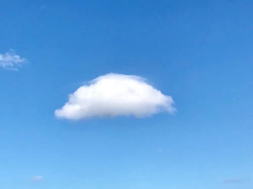 「雲博士静佳」の影響で雲を眺めるのが癖になった夫が「可愛い雲が浮いているよ」と指さした。開けた空の大きな道路を走るミニカーのよう。