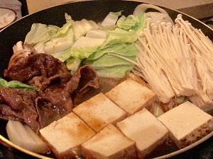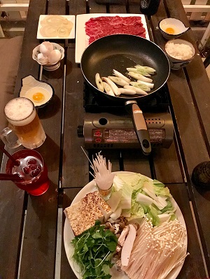 夜は月明かりで白く浮かぶビーチを眺めながら、テラスのリビングにて『すき焼き』を食べた。