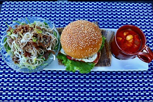 『信州蕎麦とハンバーガーが付き合った💛 ミネストローネを添えて・・』
