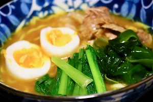 我が家のお昼はまだまだ続くラーメン特集。ラーメン大好きの小池さんこと我が夫がカレーラーメンを作りました。