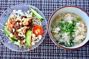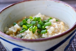フーチバとはヨモギのこと。ジューシーは沖縄の炊き込みご飯。三枚肉で作る。そしておじやのようにトロトロのジューシーをボロボロジューシーという。