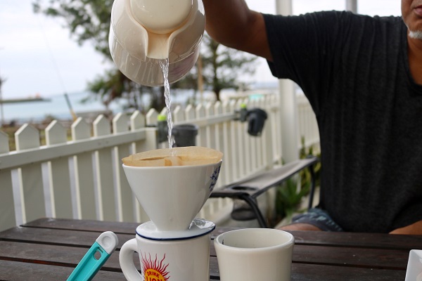 目の前の海と空を眺めながらテラスのカウンターでお召し上がりください。
