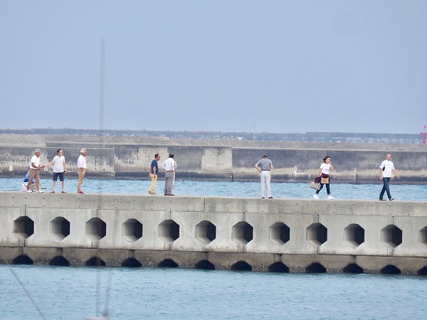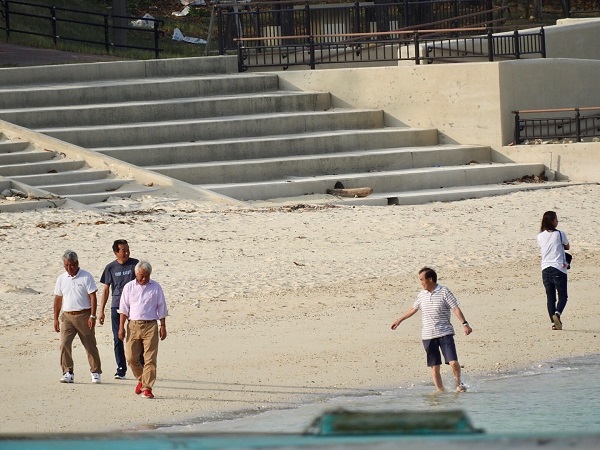 宿から見えるビーチや桟橋にも、朝の散歩に来る団体さんの姿がチラホラと・・・。