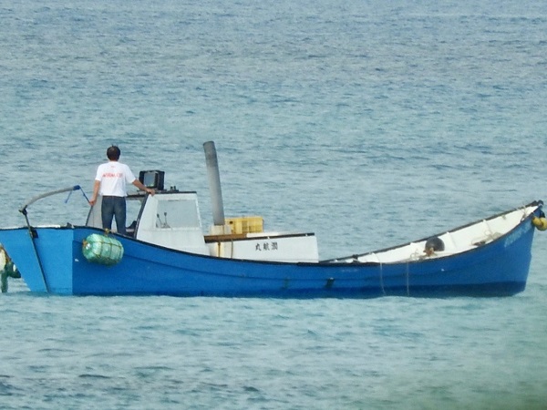沖の方では毎朝のように漁をする船の姿が見られる。何が捕れるのかな?