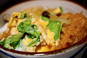 我が家のお昼は「宮古風かつ丼」を夫が作ってくれました。