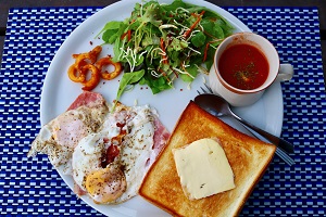 ポークランチョンミートの「海が見えるレストラン HELL’S KITCHEN(ヘルズキッチン)」では、朝食と夕食の準備がございます。宿泊者限定で事前の予約が必要です。