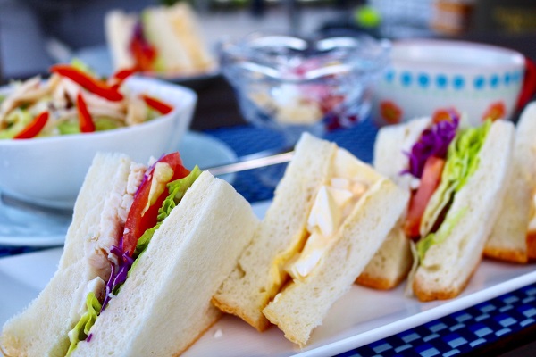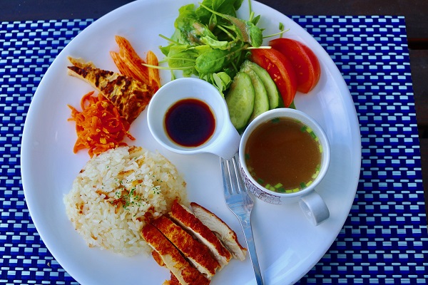 朝食の一例です。イラブティー二島の、朝の光を浴びて真っ白に輝く家々を眺めながらお召し上がりください。