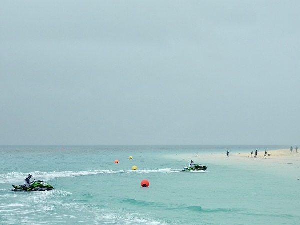 その後、車に乗って橋から観戦。そのまま久し振りの来間島へ。ここでもまた「雨なのに」美しいブルーの海を見て驚き、