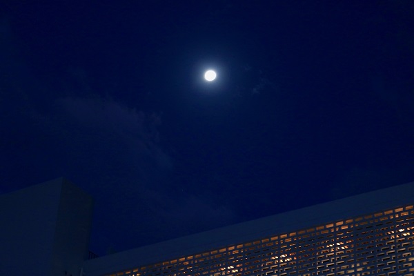 お月様を追いかけながらの朝のウオーキング。