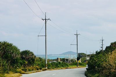 何もない島だからこそ、普段は何も感じない電柱の並び方や、