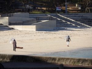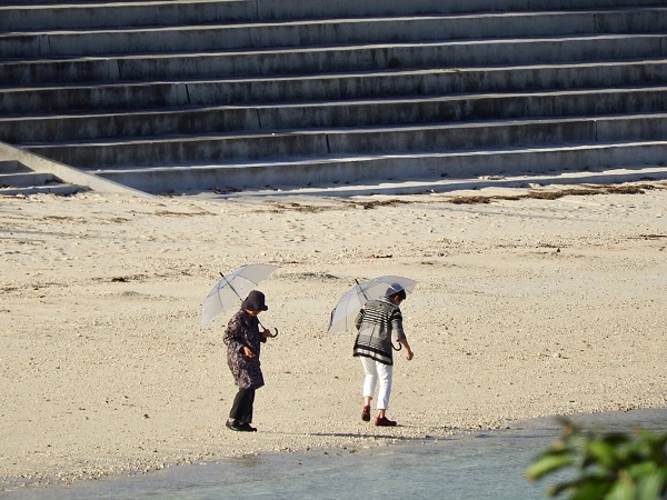 晴れている日は1月でも暑いのに・・。その証拠にテラスで朝食を食べていると、お隣のパイナガマビーチで強烈な日差しを遮るための傘をさしている人たちが見受けられます。